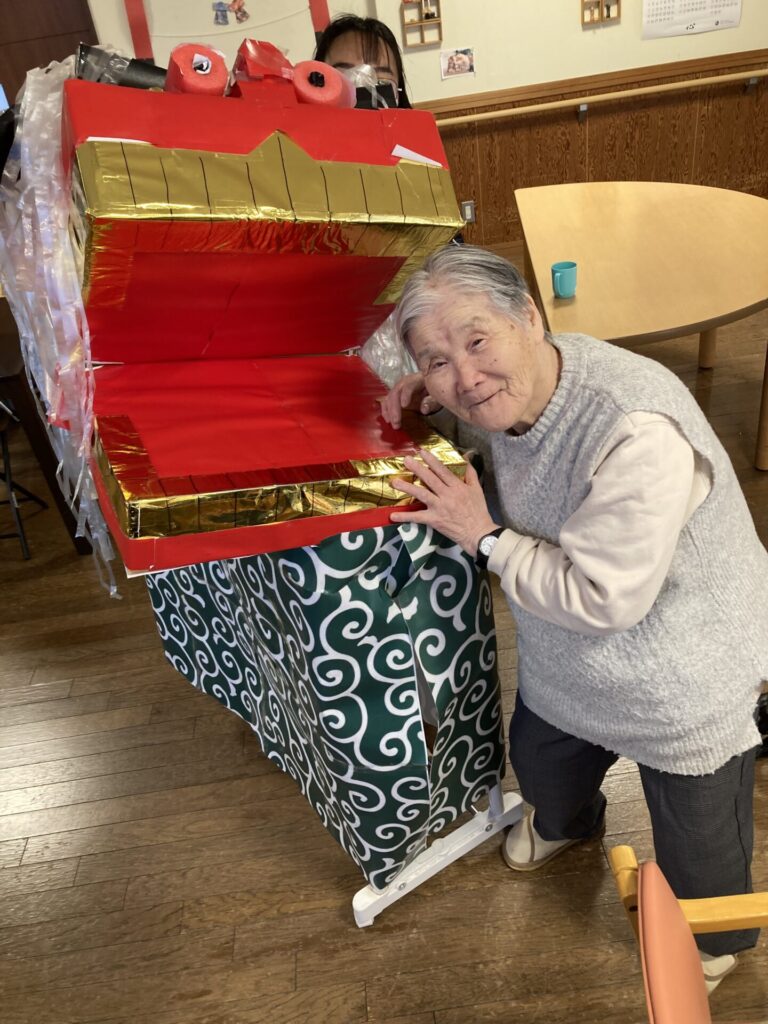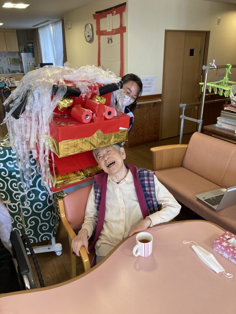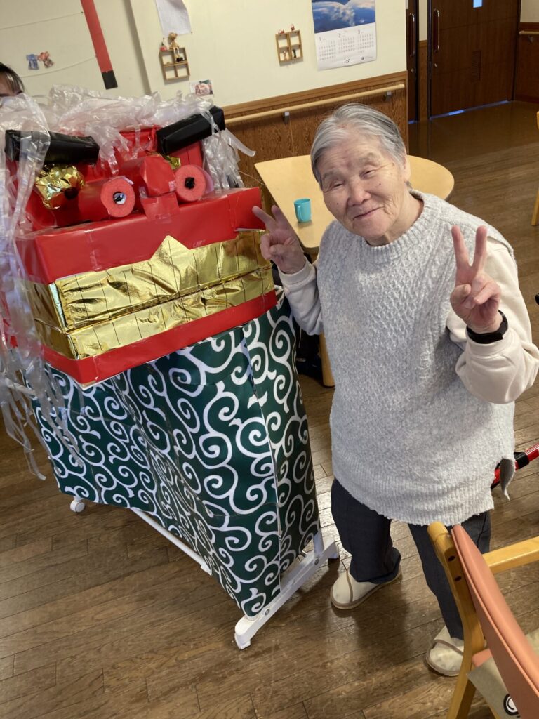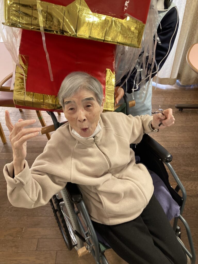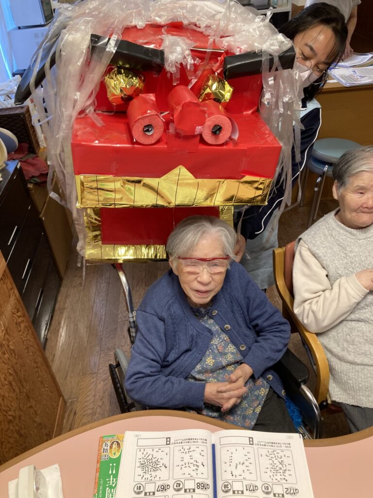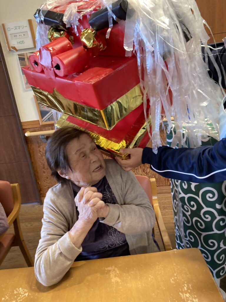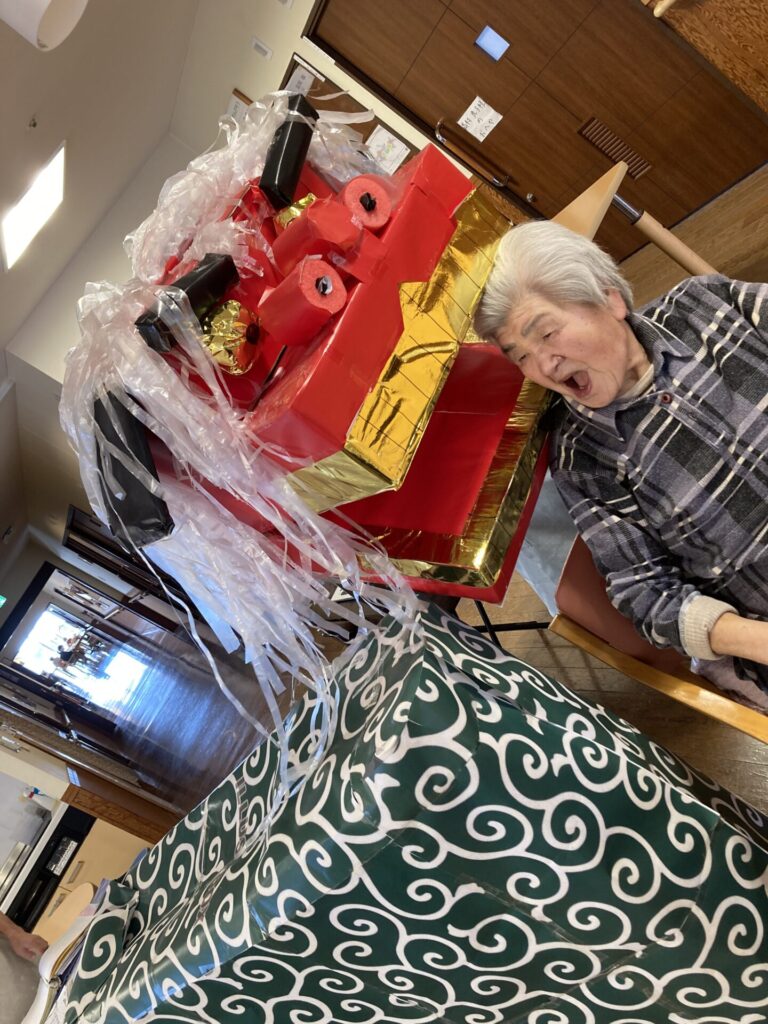 実習生さんが、獅子と一緒に、入居者様のもとへ…