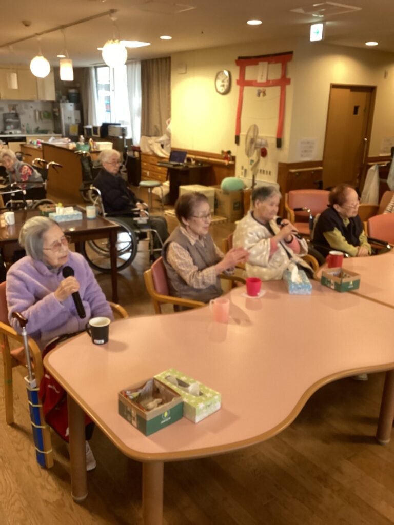 イベントアルバム 🎵🎤~午後のひと時~🎤🎵 calendar_today 2026/03/01 外は曇り空ですが、盛り上がっていきましょう!! 天気は悪くとも、心は晴れ晴れ🌞✨ 本日も入居者の皆さん元気に過ごされております😊