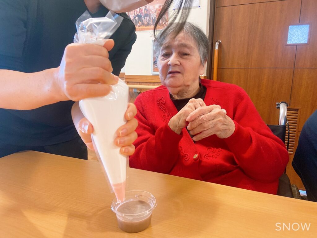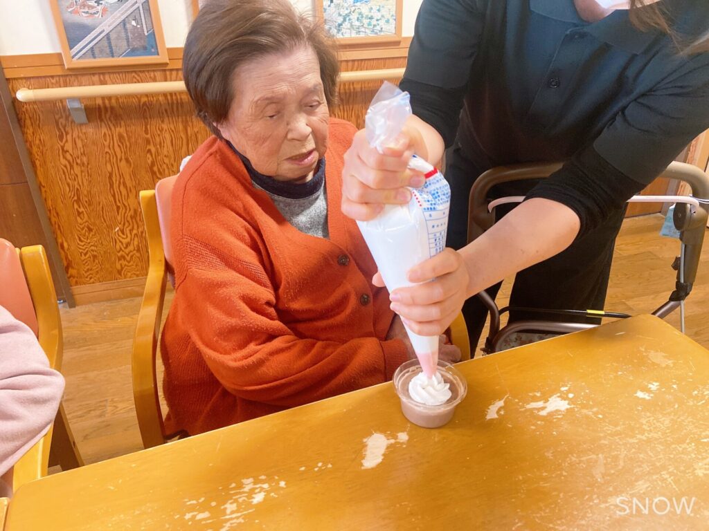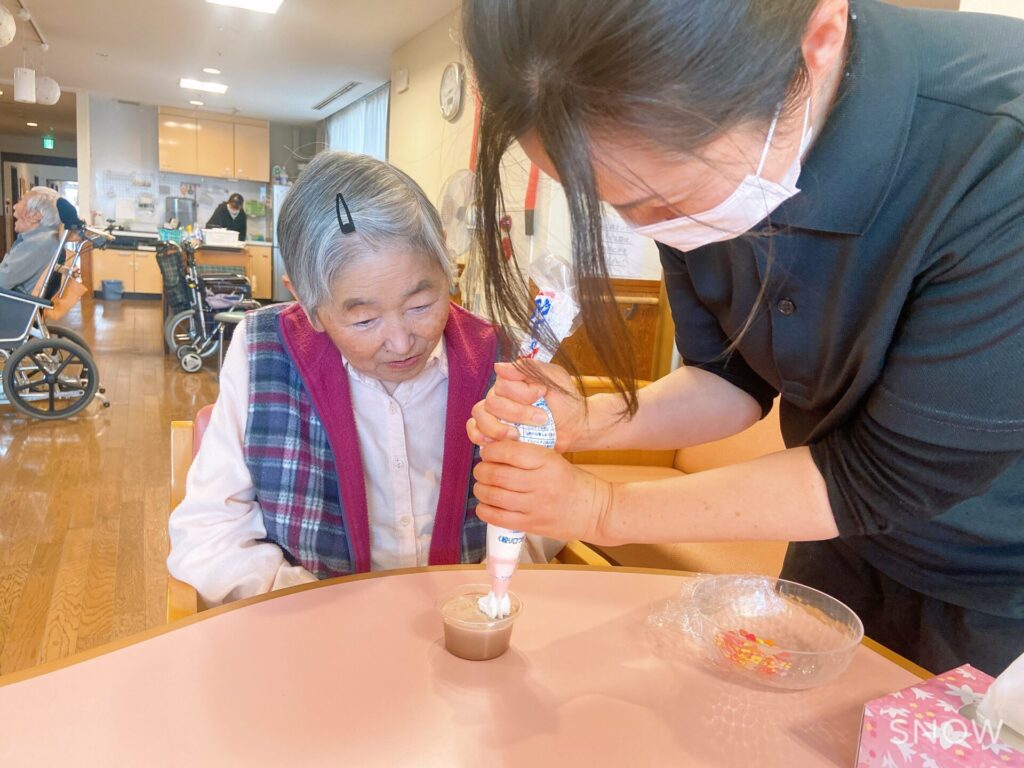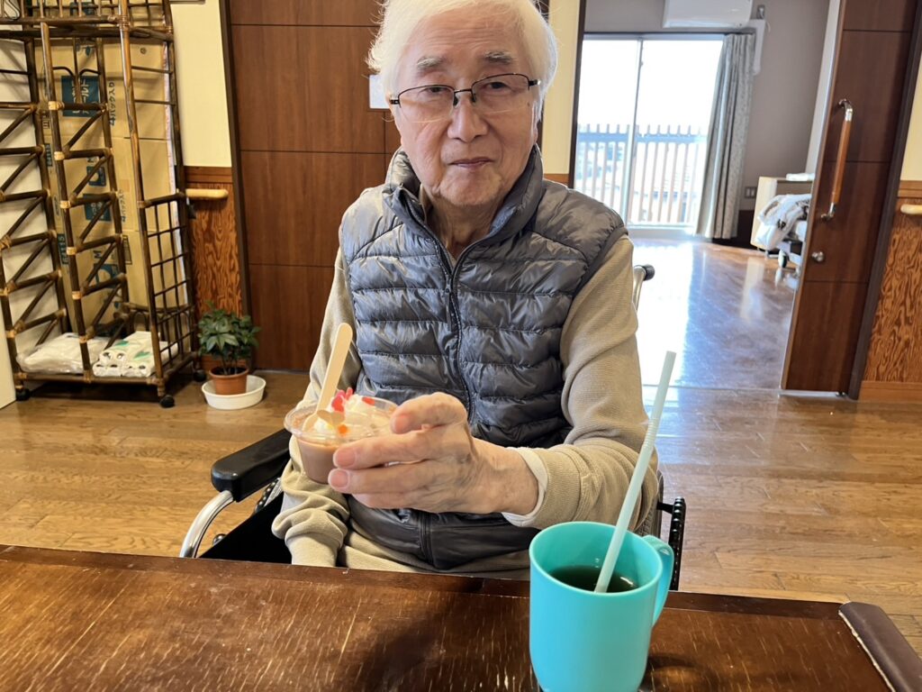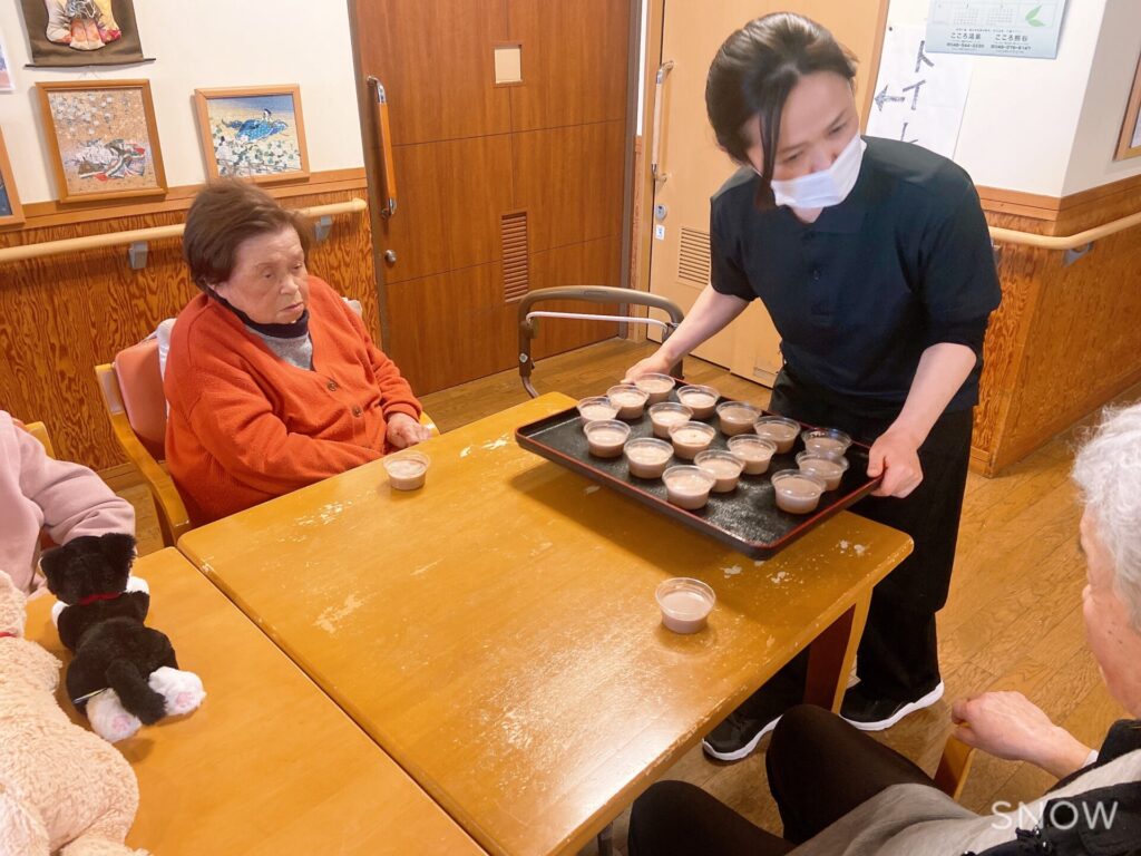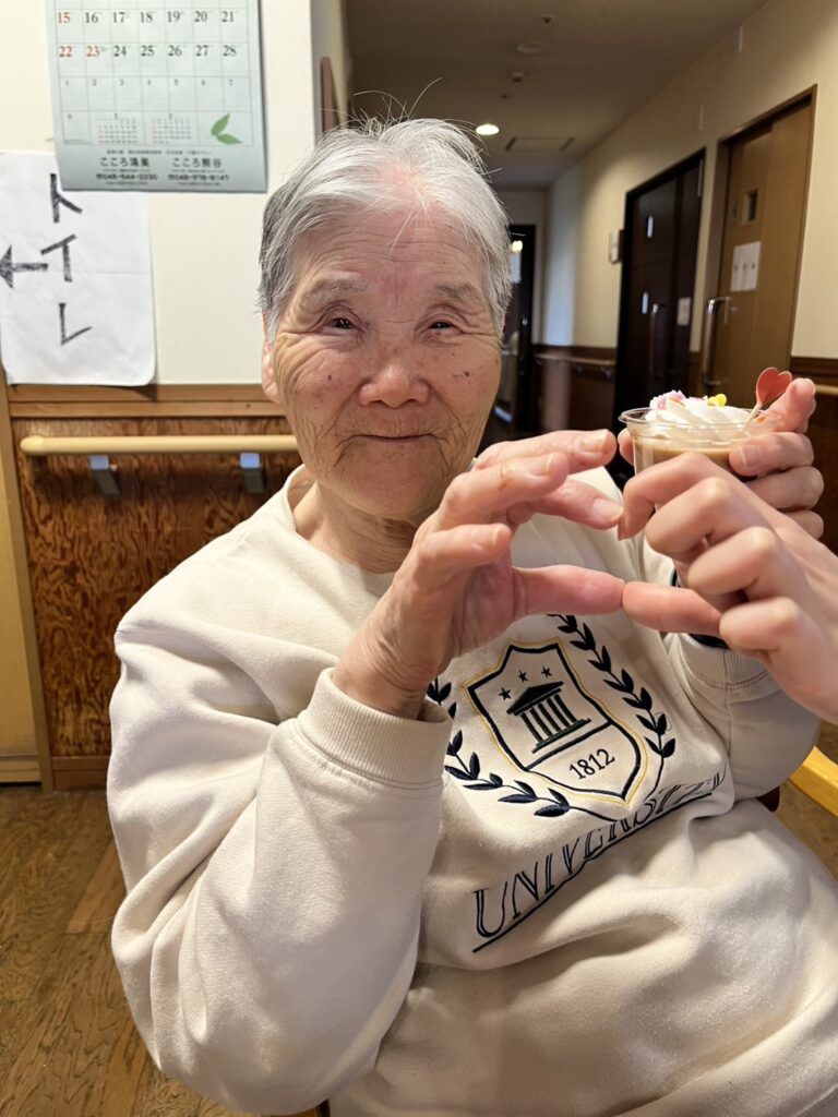 ココアプリンの感想を尋ねられた入居者さんよりハートマーク💗頂きましたので、大成功です😊