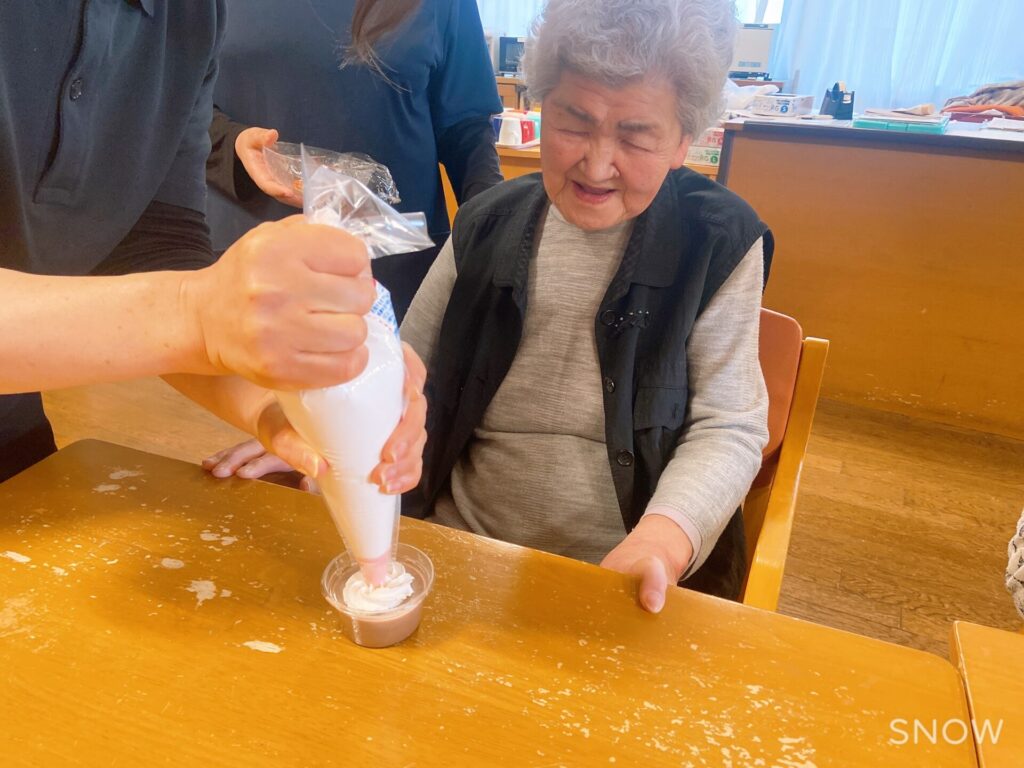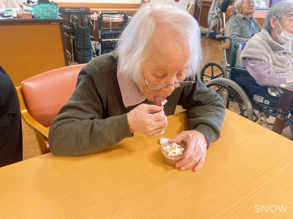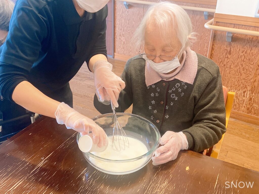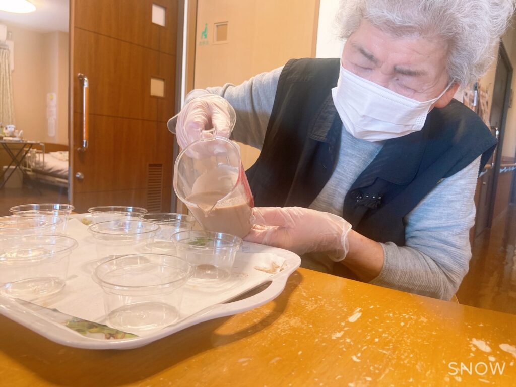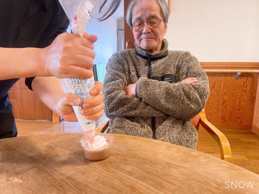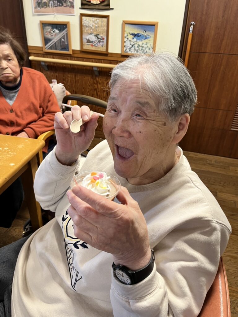 ココアプリンの感想を尋ねられた入居者さんよりハートマーク💗頂きましたので、大成功です😊