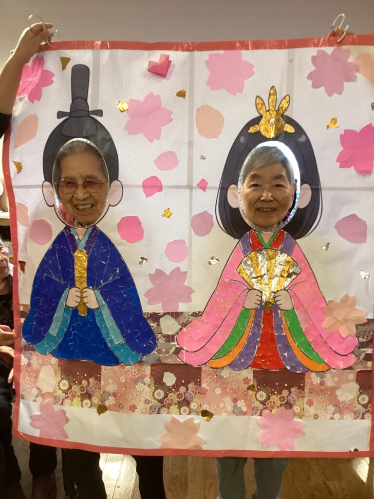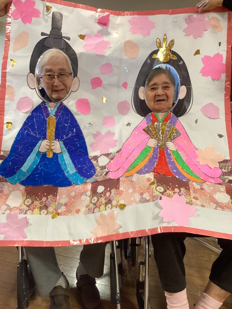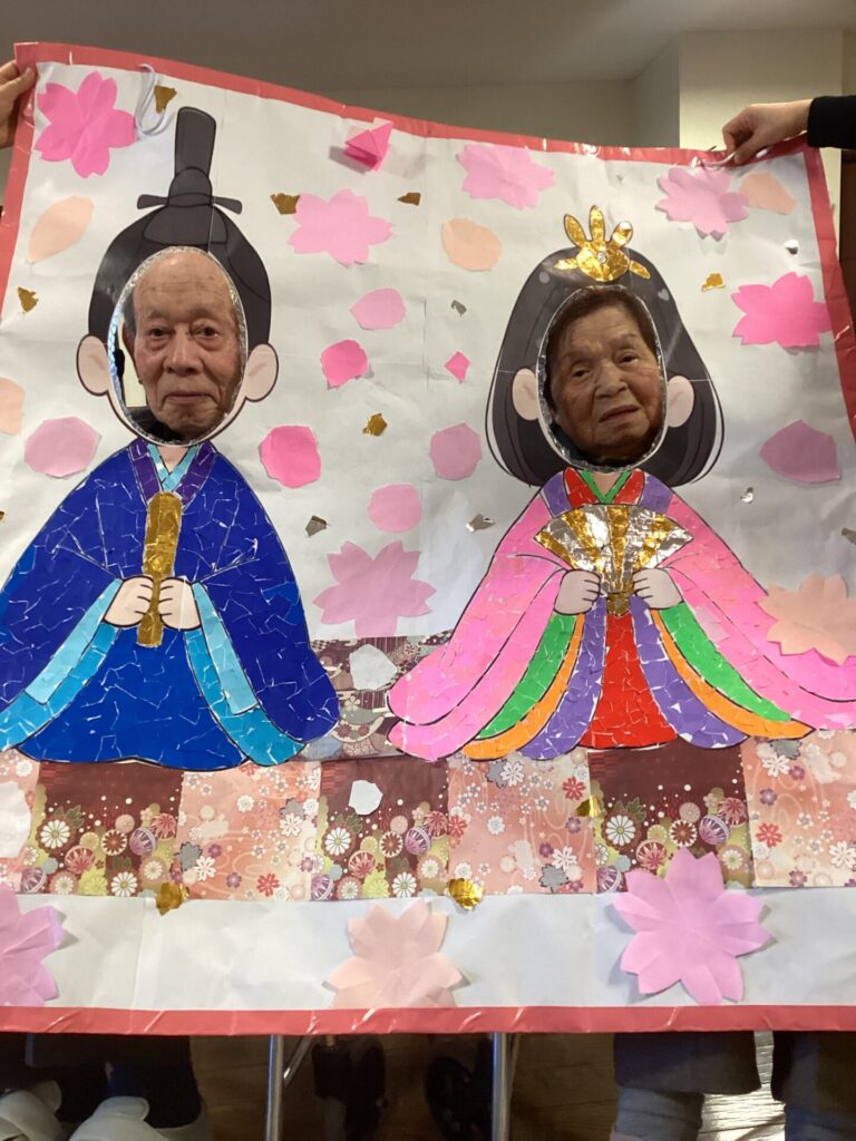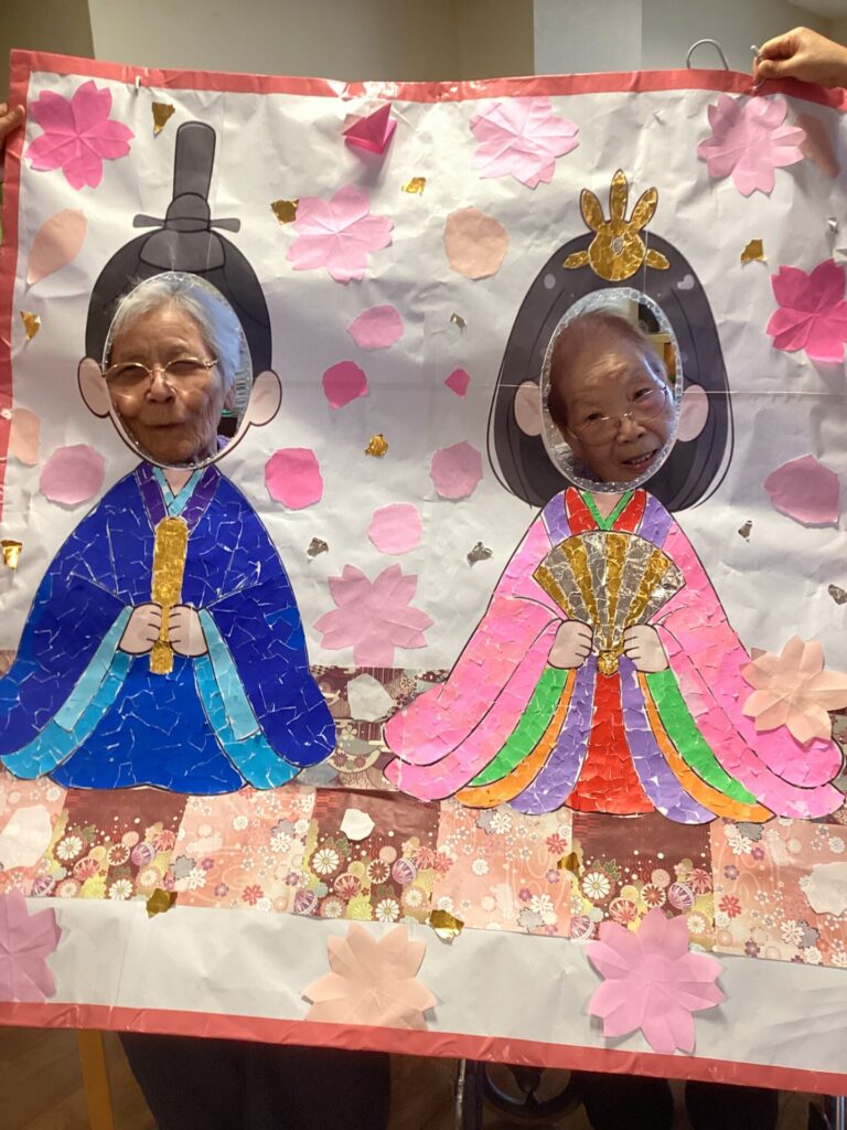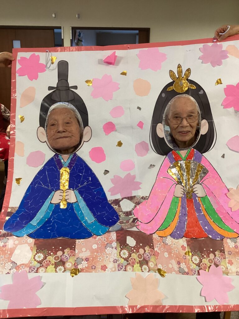 イベントアルバム 🎎✨~ひな祭り~🎎✨ calendar_today 2026/03/06 皆さんで何やら作業中です😊 真剣です💦 皆さんのご協力で、ステキなお内裏様とお雛様の貼り絵が完成✨ そして記念撮影📷✨ 記念撮影の後は… 雛祭りスペシャル手作り和菓子を,皆さんで召しあがりました😊 「食べるのがもったいない💦」「可哀そう💦」との声もありましたが、一口食べると、その美味しさに皆さんビックリ✨ もちろん皆さん完食でした(笑) 看護実習で勉強に来ていた看護学生さんにもお手伝い頂きました😊 ステキな看護師さん目指して頑張って下さい!!応援しています✨