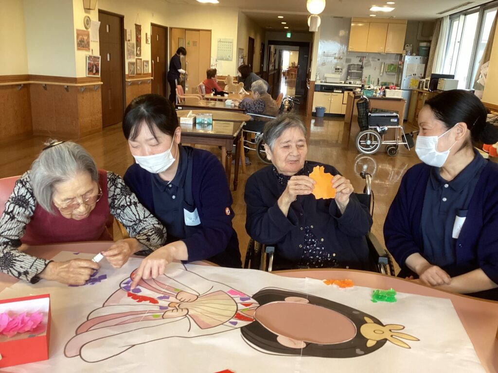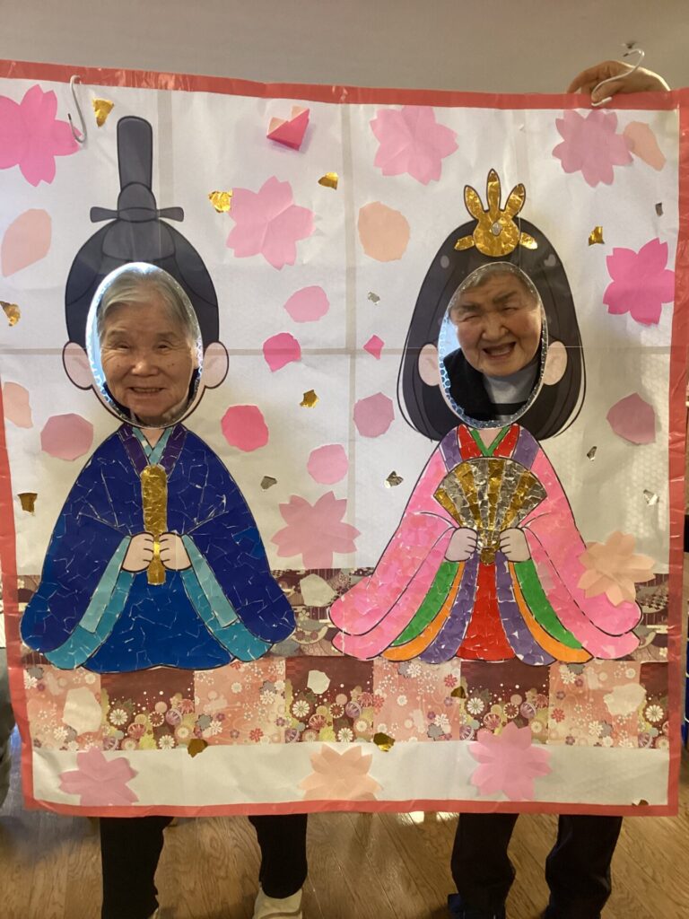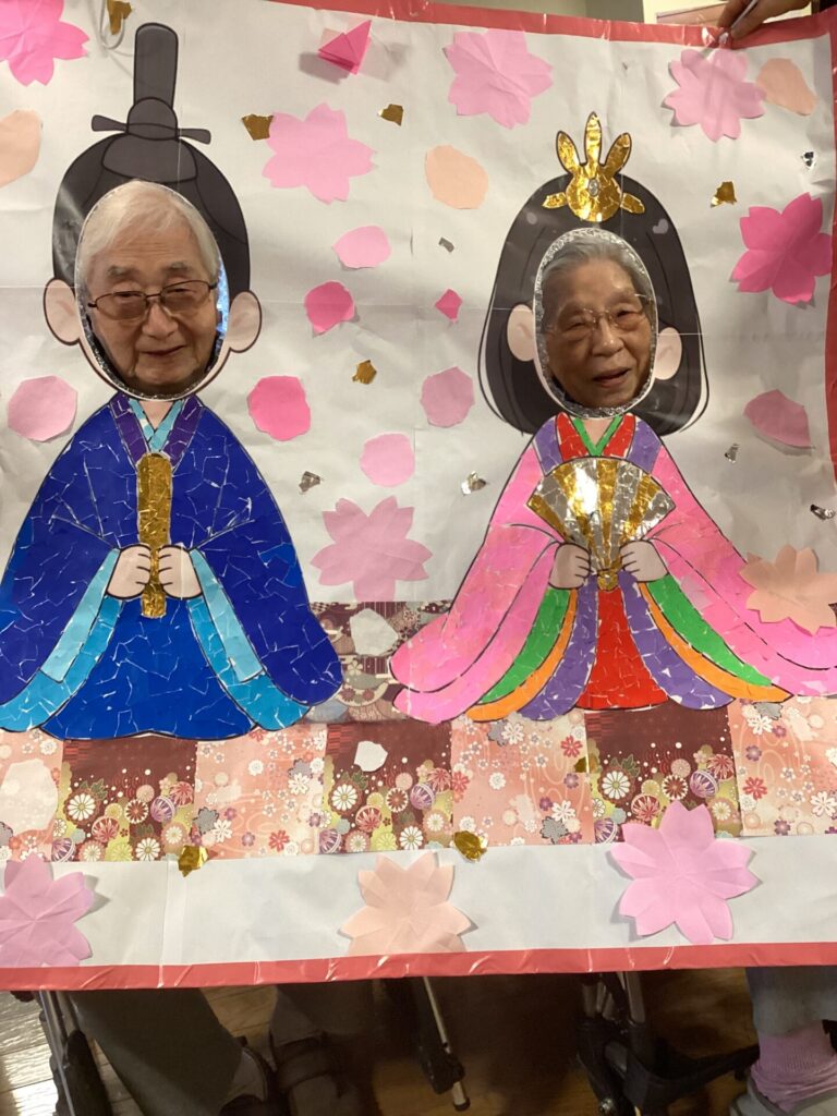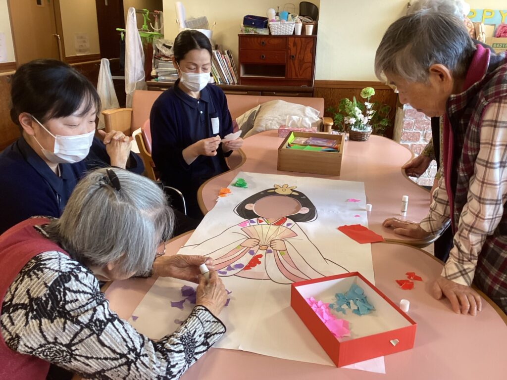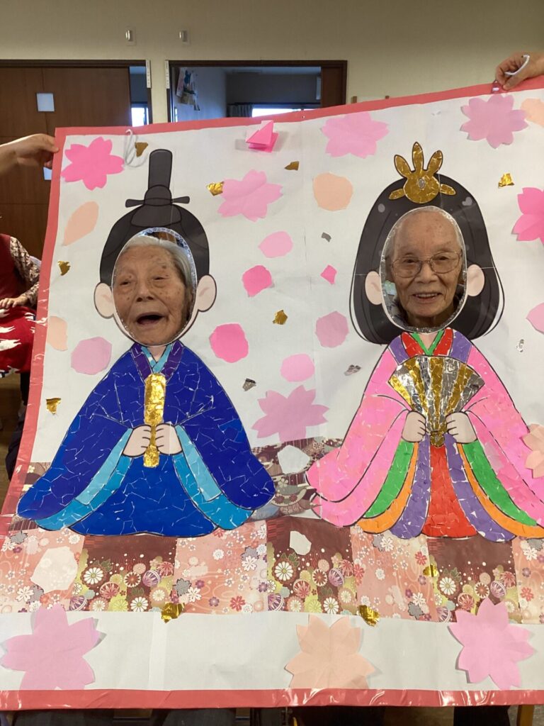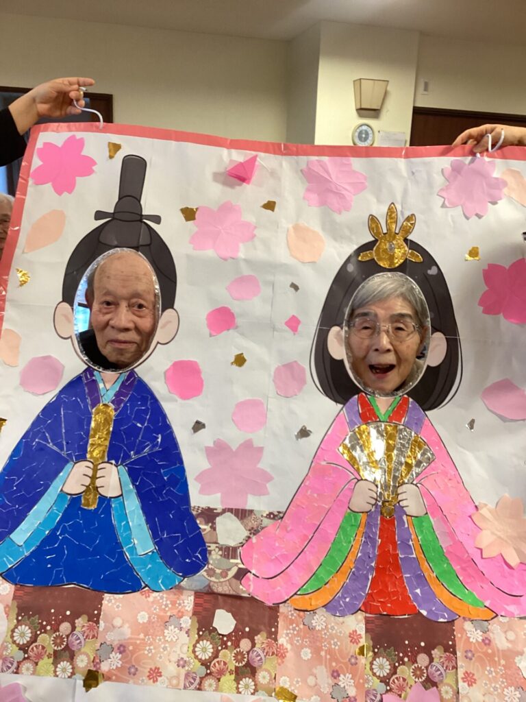 イベントアルバム 🎎✨~ひな祭り~🎎✨ calendar_today 2026/03/06 皆さんで何やら作業中です😊 真剣です💦 皆さんのご協力で、ステキなお内裏様とお雛様の貼り絵が完成✨ そして記念撮影📷✨ 記念撮影の後は… 雛祭りスペシャル手作り和菓子を,皆さんで召しあがりました😊 「食べるのがもったいない💦」「可哀そう💦」との声もありましたが、一口食べると、その美味しさに皆さんビックリ✨ もちろん皆さん完食でした(笑) 看護実習で勉強に来ていた看護学生さんにもお手伝い頂きました😊 ステキな看護師さん目指して頑張って下さい!!応援しています✨