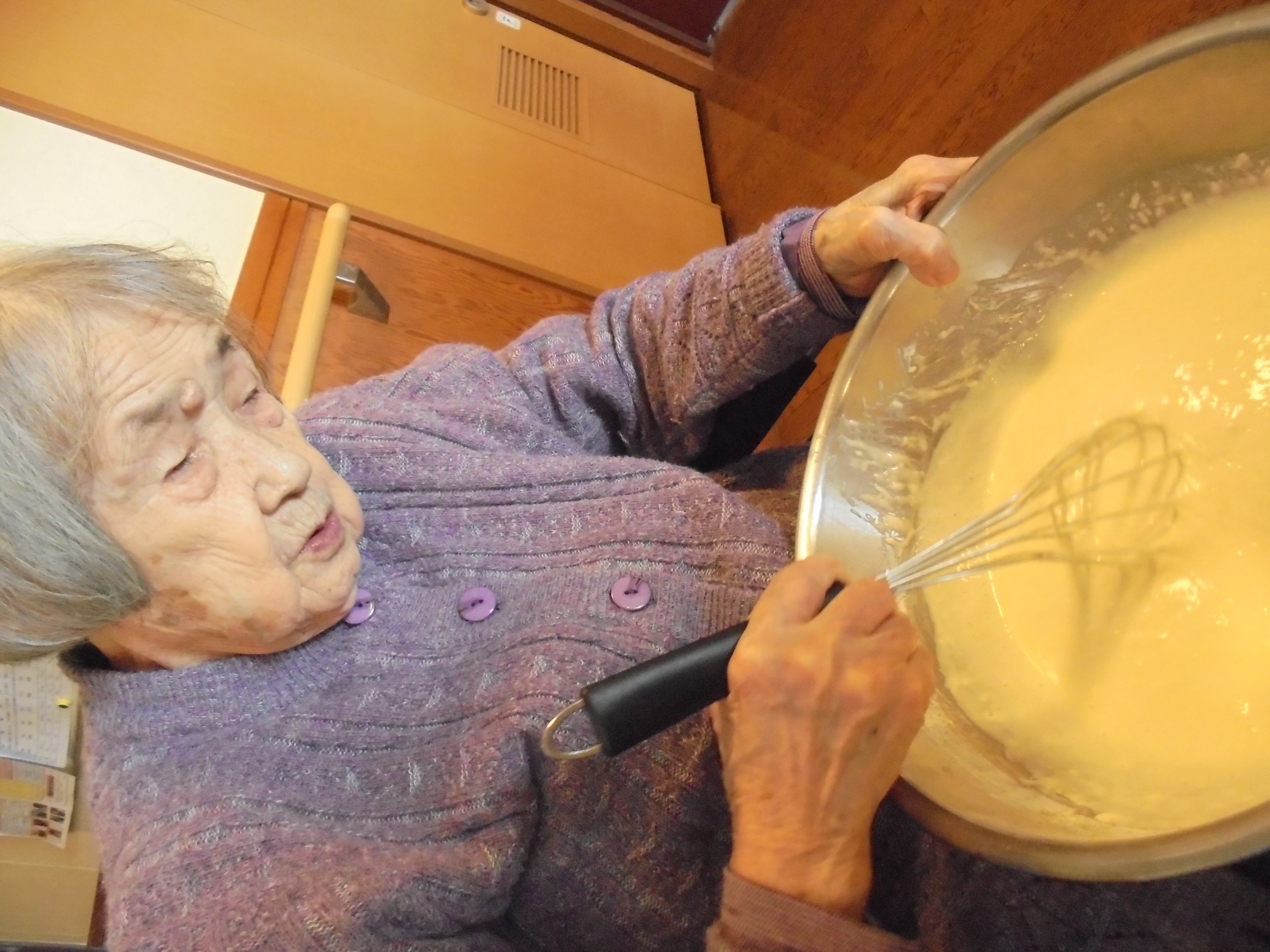 こもれび、ひだまり、おやつレク(クレープ作り) calendar_today 2017/01/17 前回すいとん作りで使用した小麦粉が余ったので、甘い物好きの入居者様のリクエストに応じてクレープを作りました 😉 みなさんの手伝いもあり準備万端!!いざクレープ作りに!! 一味違うアイスを添えて… 😎 自分で選んだ具材を職員が生地の上に! 自分で丸めて召し上がりました 🙄 みんな美味しい美味しいと大絶賛 😳 あっ!!職員もついつまみ食い!! 笑 次回は1月24日におしるこを作ります! 興味のある方は遊びに来てくださいね 😉