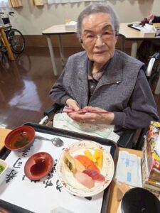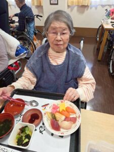 イベントアルバム 寿司ランチ🍣 calendar_today 2026/01/18 みんな大好き お寿司の日 ということで お食事中を失礼していくつか photoをご紹介します 美味しいものは、お食事の進みも早いんです テンション高くなりますよね 美味しそうに召し上がっています 笑顔がたくさん見られた ランチタイム でした 完食!! ごちそうさまでした 美味しく食べられるって嬉しいですね